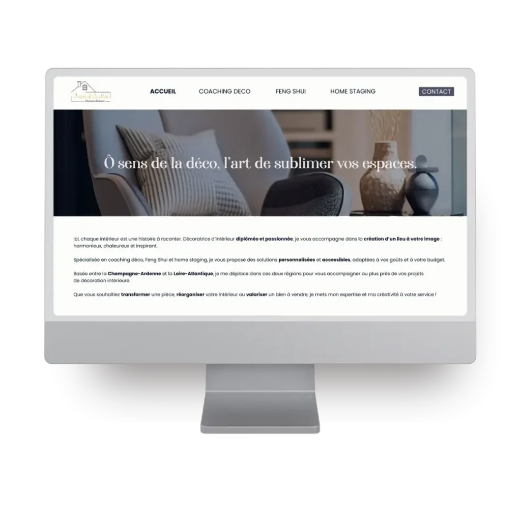Cette refonte complète permet à la décoratrice de présenter une image professionnelle, moderne et mémorable, tout en renforçant sa visibilité et sa cohérence sur tous ses supports de communication.