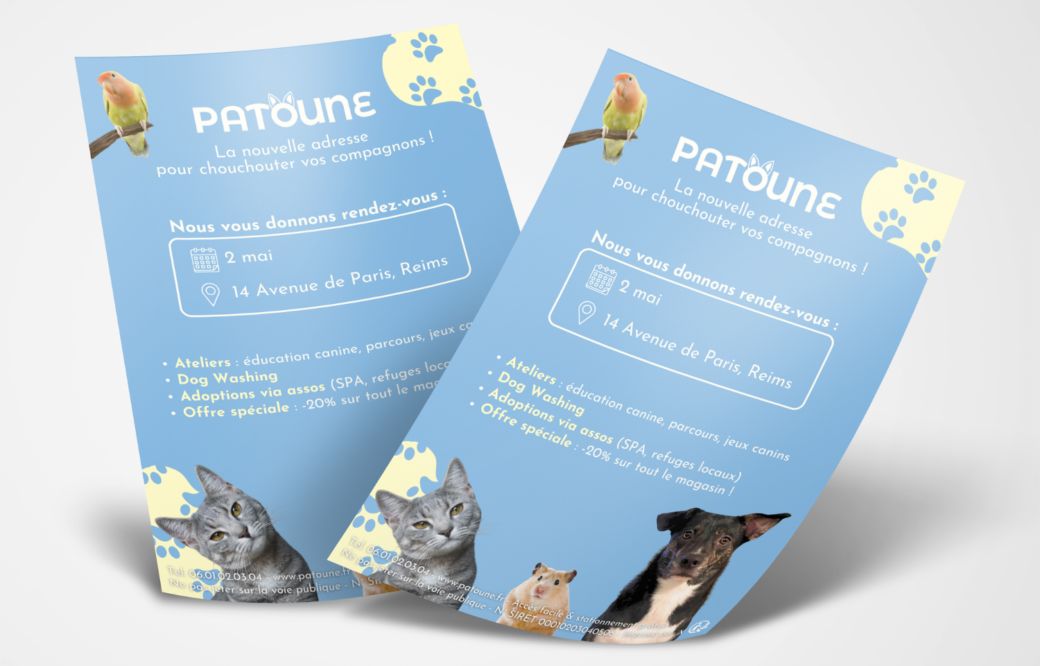 Patoune est un projet fictif pensé lors d’un workshop : c’est une animalerie indépendante, pensée pour être un lieu de vie à la fois innovant et éthique centré sur la nutrition, la santé animale & l’expérience client. Ce projet incarne une vision nouvelle de l’animalerie, plus proche, plus humaine et tournée vers l’avenir !