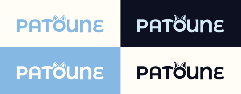 Pour le logo, j’ai créée une typographie stylisée douce avec des oreilles d’animal sur le O, le tout accompagné de couleurs crèmes et bleues.